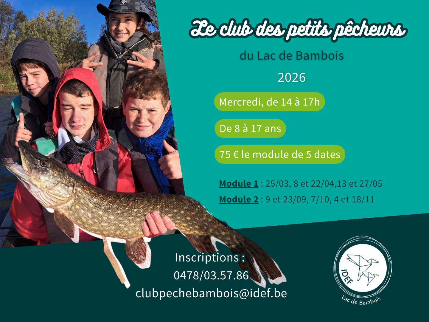 Renseignements et inscription 0478/03 57 86 – clubpechebambois@idef.be
